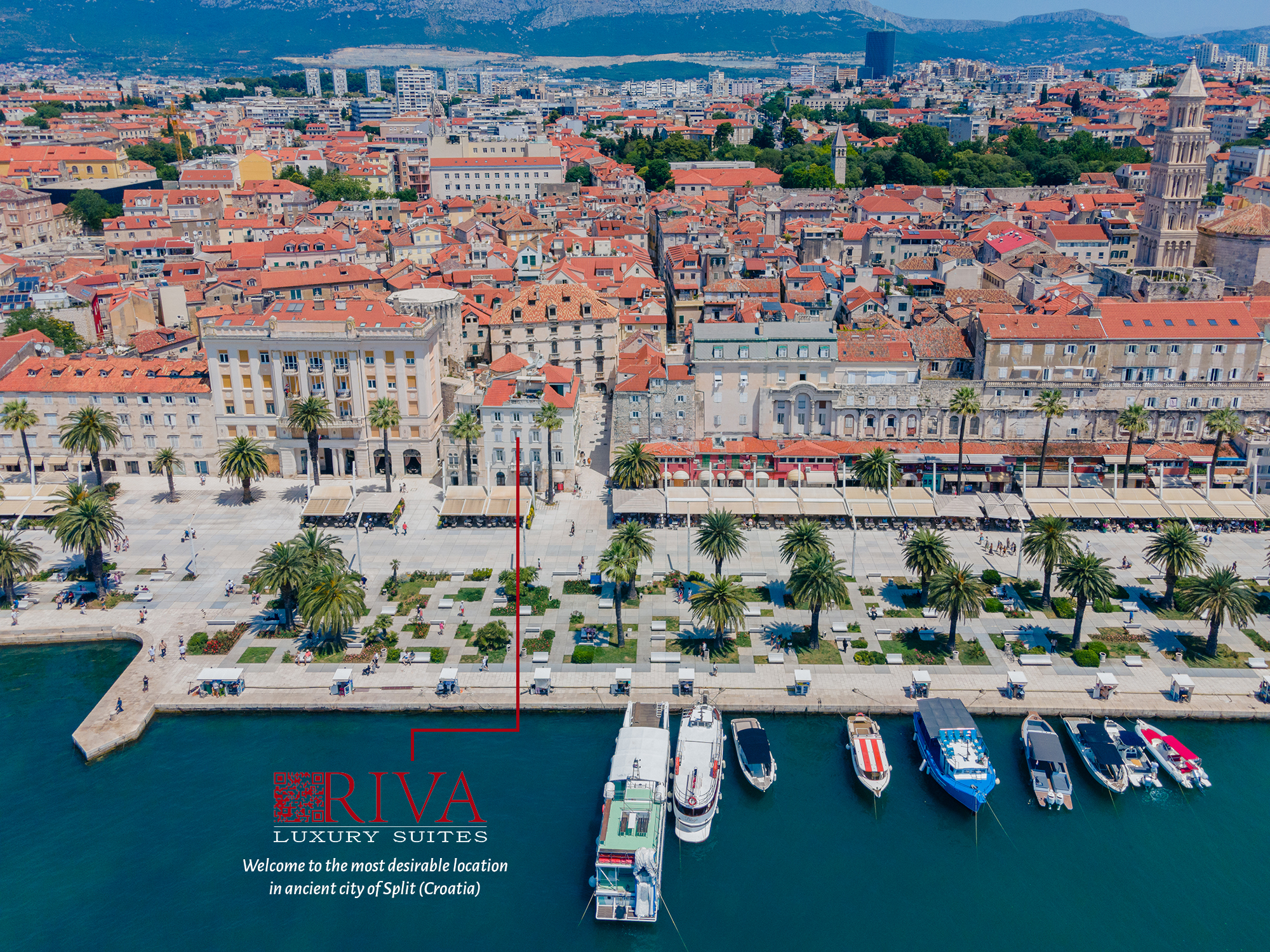 Riva Luxury Suites have the most desirable location in the heart of Split Old Town and ancient Roman Diocletian’s Palace – UNESCO World Heritage Site from 4th century, with breathtaking south facing views of the beautiful Split Bay.